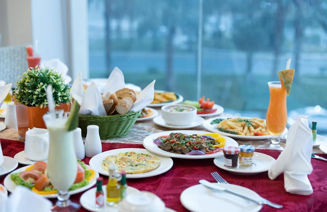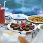 Şahane atmosferde restoranda açık büfe kahvaltı servis edilir. Tatilin keyfini çıkarmak için otelde meze barı vardır.